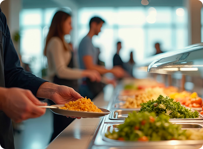 Refeições nutritivas, seguras e saborosas, com operação estável para atender equipes administrativas com consistência.
